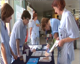 Splošna bolnišnica na Jesenicah je vÄeraj kar se da široko odprla svoja vrata. Medicinske sestre, babice, fizioterapevtke in radiološki inženirji so z zgibankami na stojnicah izÄrpno predstavili delo posameznih oddelkov, s praktiÄnimi prikazi pa še dodatno ponazorili vsakodnevne naloge zaposlenih v zdravstveni negi. (K. M.)